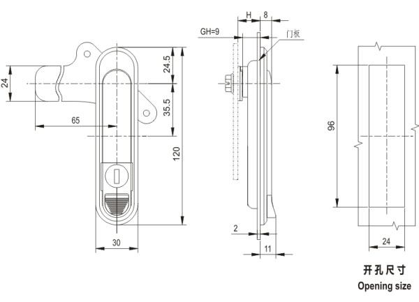 Structure: | push the button and swing 90°the handle to open or lock. |