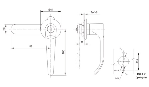 Structure | swing 90°the handle to open or lock |
