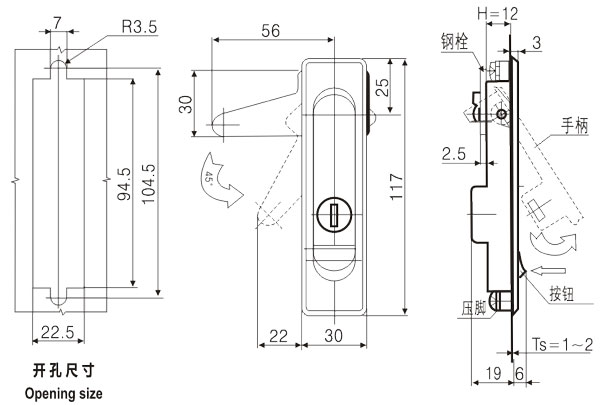 Material: | zinc alloy housing 、handle and button,steel cam and nut. |