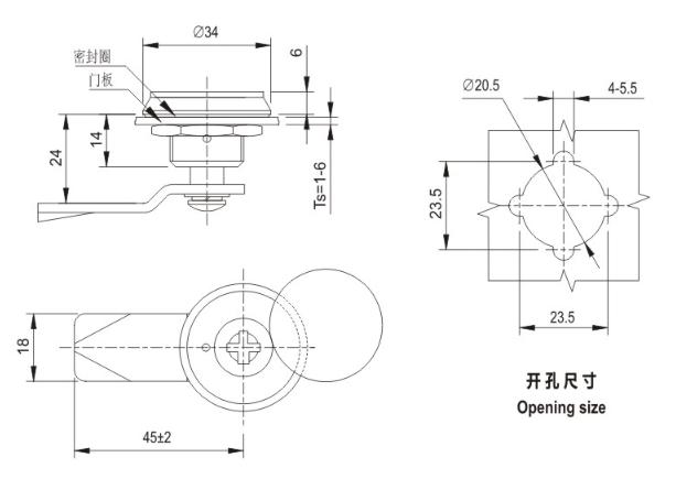 材料: 锌合金锁壳、黄铜锁芯 、碳钢钢栓和螺母
