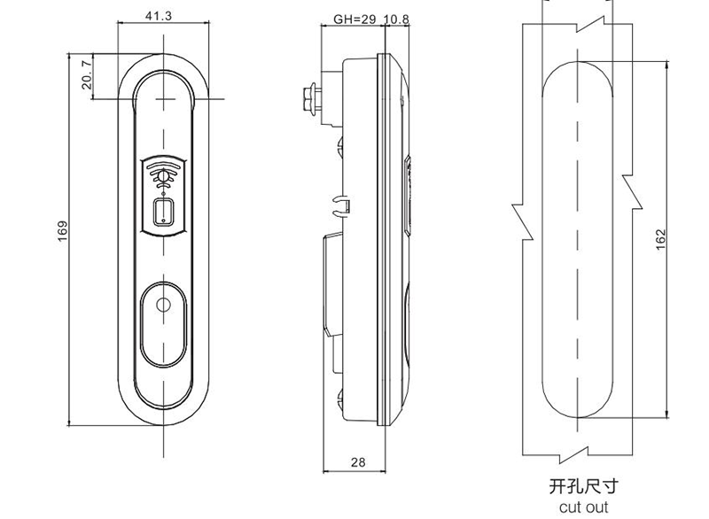 按下按钮,弹出手柄旋转60°实现开启或锁闭 |