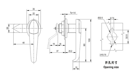 结构说明:旋转90°开启或锁闭