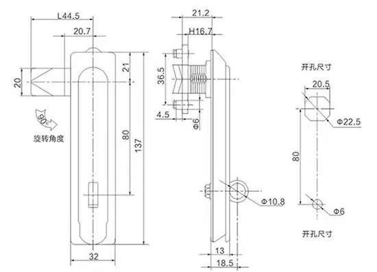 结构说明:旋转90°开启或锁闭