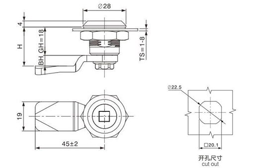 结构说明:旋转90°开启或锁闭
