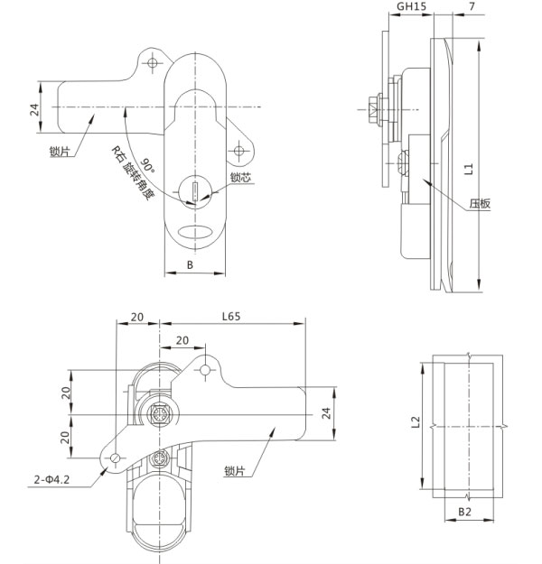 Structure: | push the handle and swing 90°the handle to open or lock.