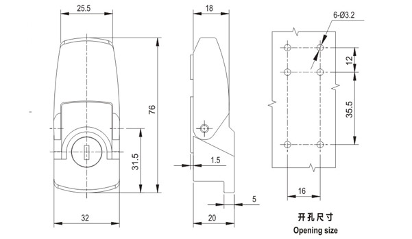 Material | zinc alloy housing 、cover and fixing parts, steel fixing parts and cam |