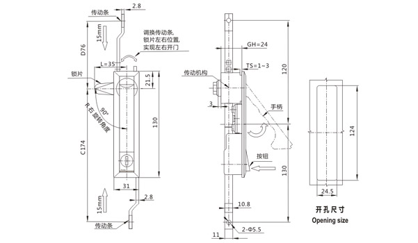 Structure | swing 90°the handle to open or lock |