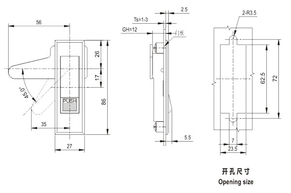 push the button and swing the handle to open or lock。 |