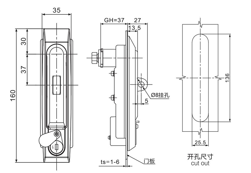 Material:Zinc Alloy Housing, Cylinder, Handle And Button,With Buckle And Dust Cover, Nut And Steel Cam.