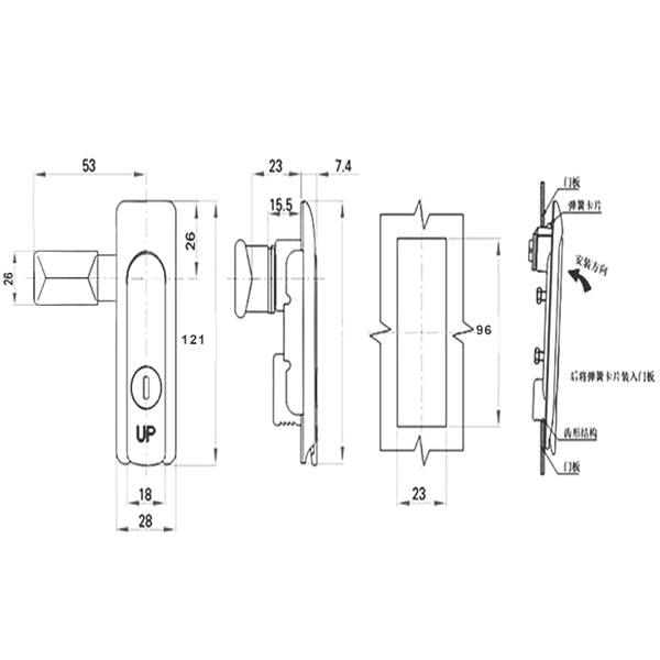 锌合金锁壳,锁芯和手柄、螺母和碳钢钢栓 |
