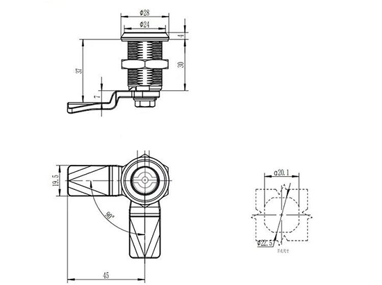 结构说明:旋转90°开启或锁闭